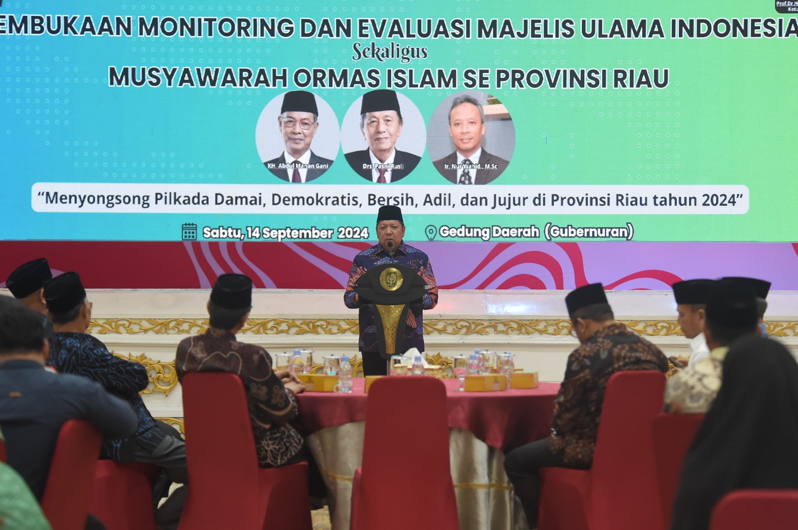 PEKANBARU – Majelis Ulama Indonesia (MUI) Provinsi Riau menggelar monitoring dan evaluasi (Monev) bersama dengan MUI Pusat. Pembukaan acara ini diselenggarakan di Gedung Daerah Balai Serindit, Kota Pekanbaru, Sabtu (14/9/2024).