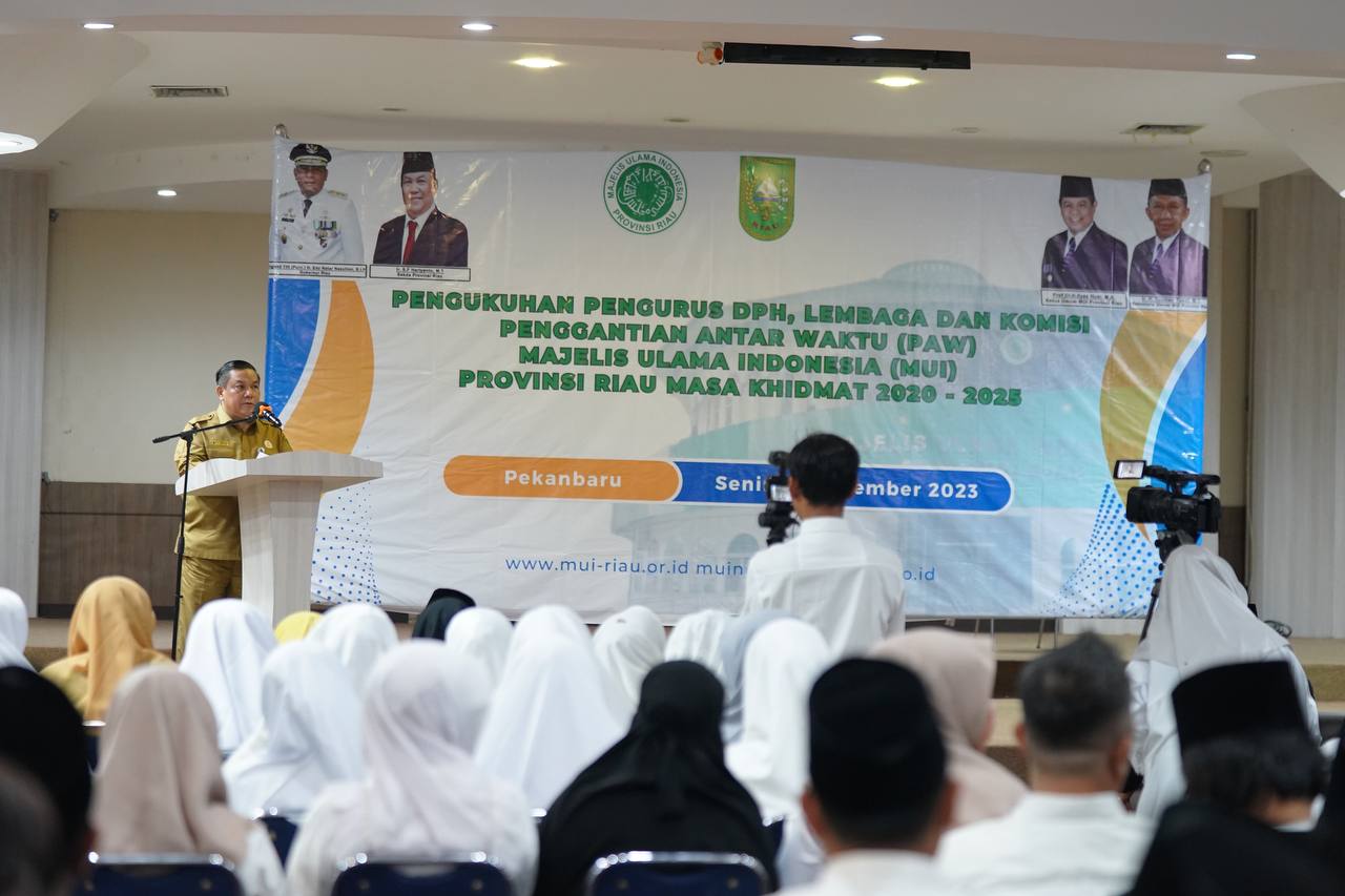 PEKANBARU – Sekretaris Daerah Provinsi (Sekdaprov) Riau, SF Hariyanto menghadiri pengukuhkan Dewan Pengurus Harian (DPH), lembaga dan komisi pengganti antarwaktu (PAW) Majelis Ulama Indonesia (MUI) Provinsi Riau masa bakti 2020-2025. Pengukuhan tersebut berlangsung di Aula Masjid Annur Provinsi Riau, Senin (11/12/2023).